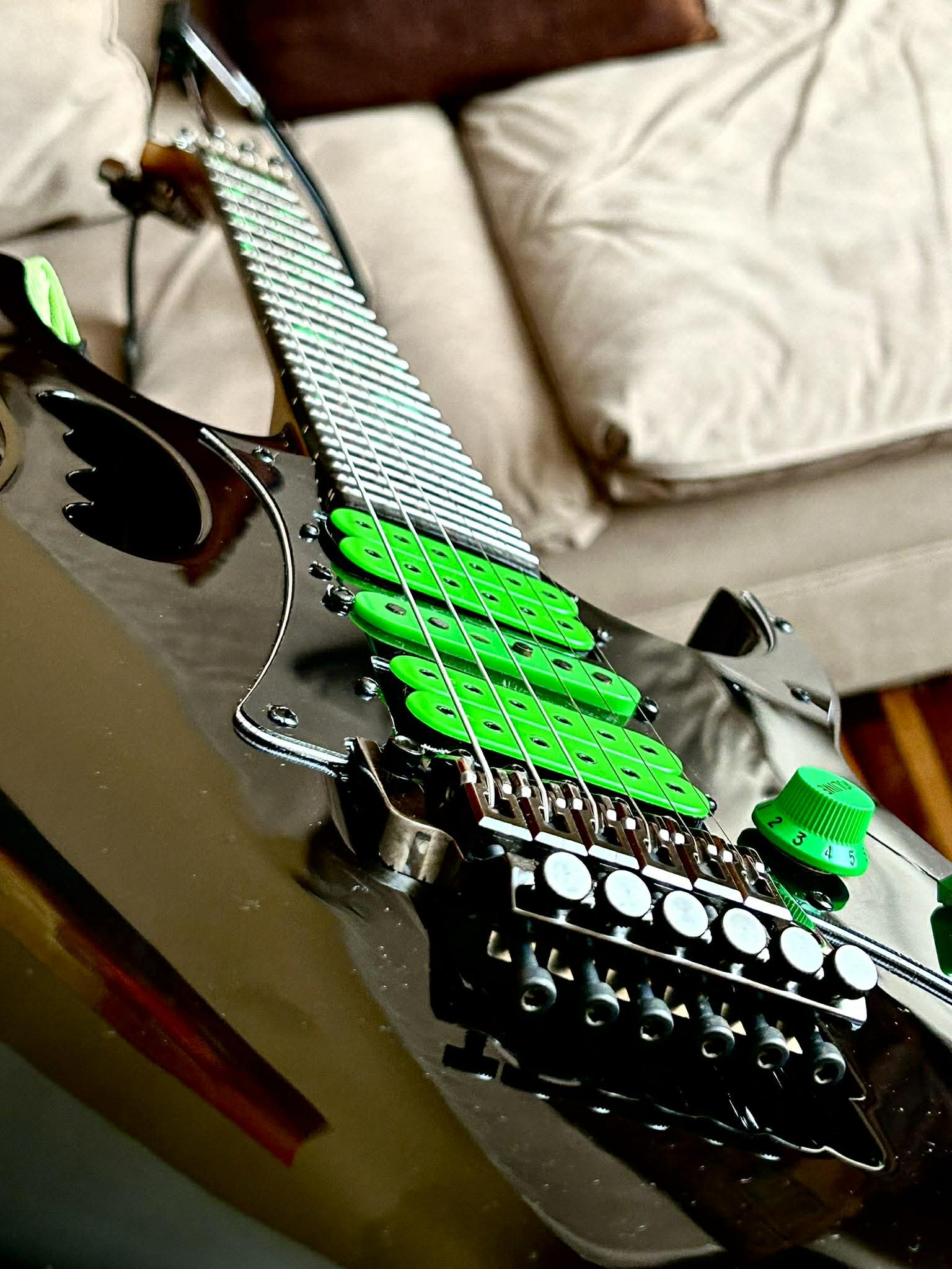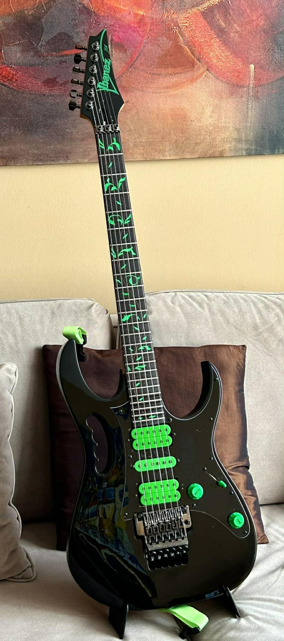 Versátil y de diseño icónico, parte de las primeras JEM creadas junto a Steve Vai. Sonido PAF Pro y mejoras de electrónica premium.